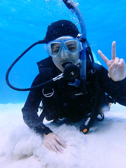 潜ってしまえはこの笑顔ですがビビってなかなか潜れませんでした