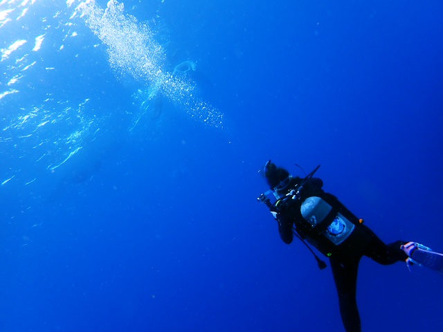 今日のファンダイバー。遠くにマンタ見えますね