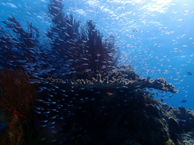 ハナゴンベ ドロップ 洞窟 アカヒメジ ボートふしま イソバナとスカテン ソフトコーラルとイソバナとスカテン スカテンいっぱい ダイバーとキンギョハナダイ ガーデンイール フタスジリュウキュウスズメダイ