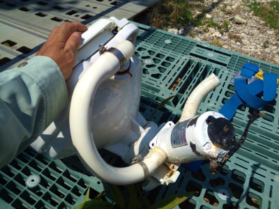 海水をポンプで吸い上げて流すだけですが。