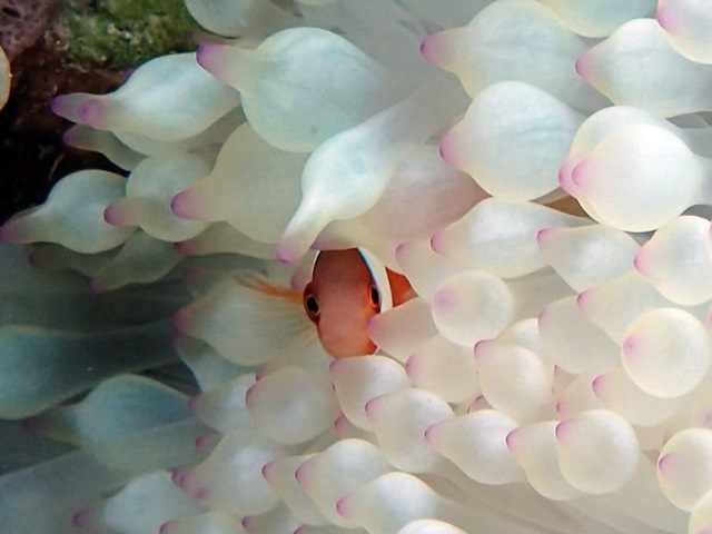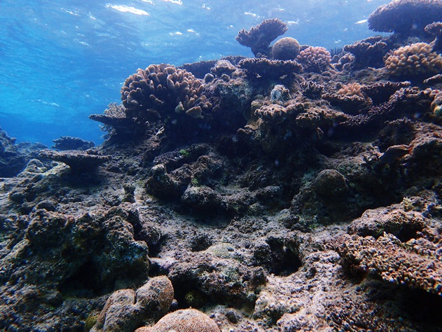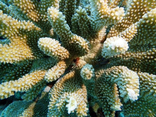 珊瑚と・・・見えませんがカニです