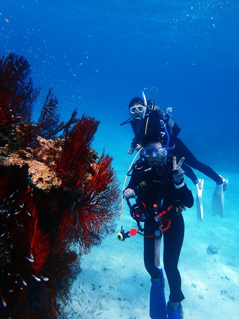 あゆみチャンは昨日はお隣のダイビングショップで潜ったそうな