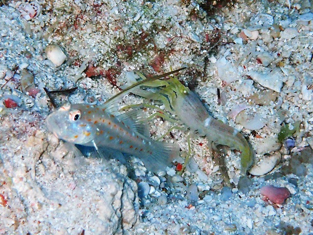 ↓結構近くまで寄らせてくれたハタタテシノビアゼとコシジロテッポウエビ