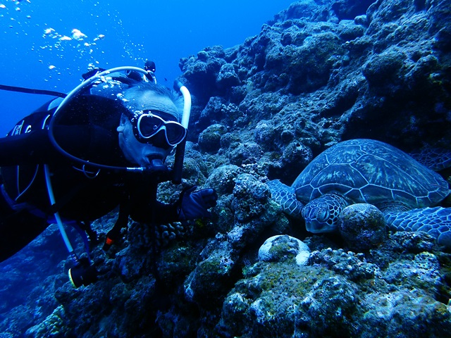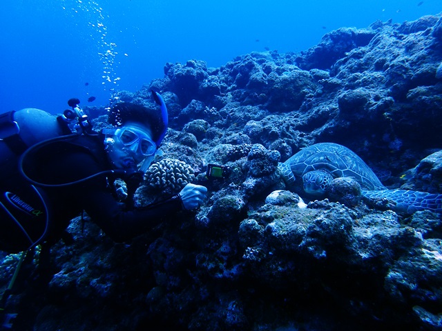 風が強いですが元気にファンダイブ行ってきました! ここところサメ率高め♪ もちろんアカククリも♪ でっかい群れに♪ して亀は寝てる?!ので 記念撮影パート1 記念撮影パート2。ふたり一緒に撮りたかったですが息の合わない二人です(爆)