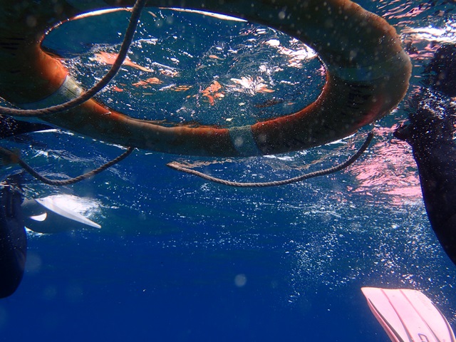 近づいて、すぐに海に入ってもらうも中々ビビッてマンタちら見しか・・で、すぐに上がってきてしまいましたとさ。