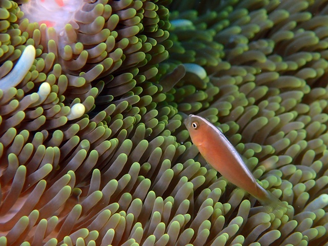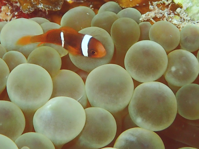 ミニなハマクマノミ。息が続きません(–;)
