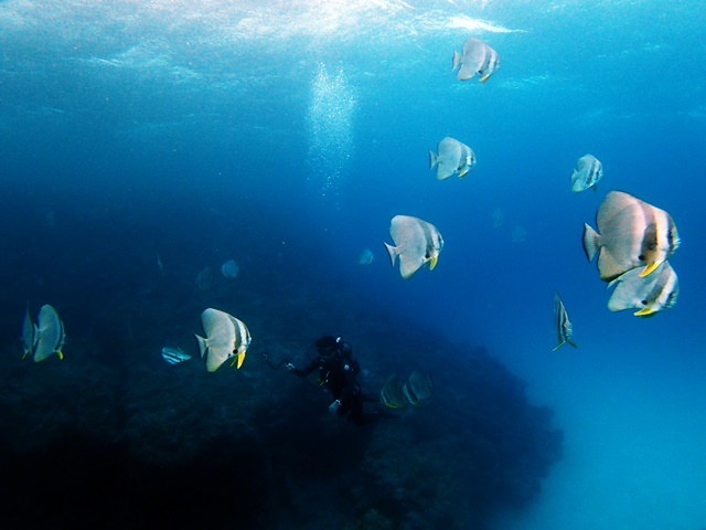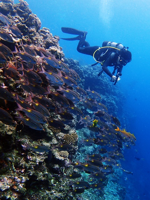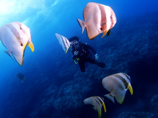 曇りがちなお天気ですが風、波もだいぶ治まり今日は午後からファンダイビングです