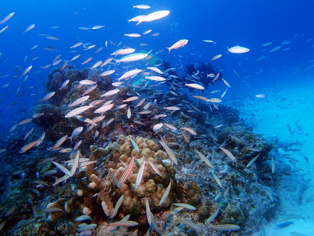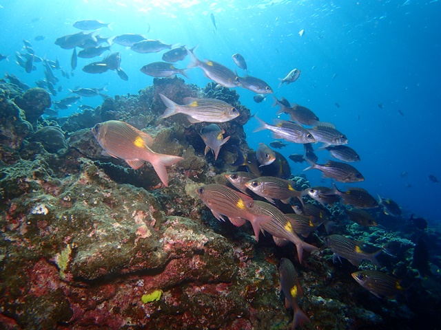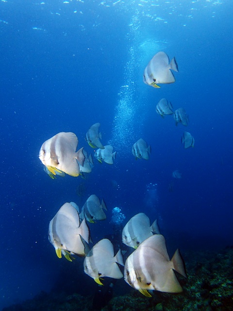 今日のダイバーはこのメンズ2名様♪ ガッツリ3ダイブ潜ってきました 今日は俺様の撮った写真なので文は短めで! こやつ↓がいっぱい ↓グルクンも5万といます ↓28匹まで数えた! 白く砂が舞ってるように見えるのは小さいスカシテンジクダイ(と思う)です 五万といるでしょう!