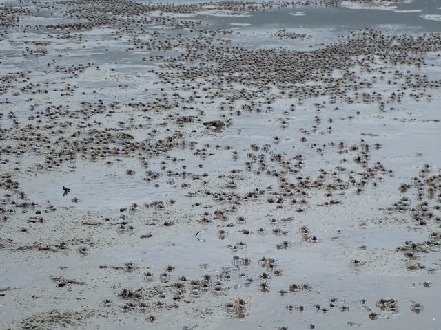 ミナミコメツキガニの大群です。近づくと逃げて追いつくと泥に潜ちゃいます