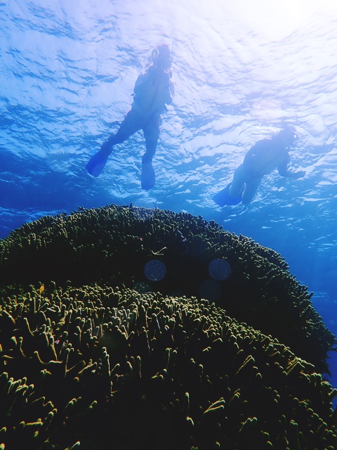 体験ダイビングの横で素潜っで撮影