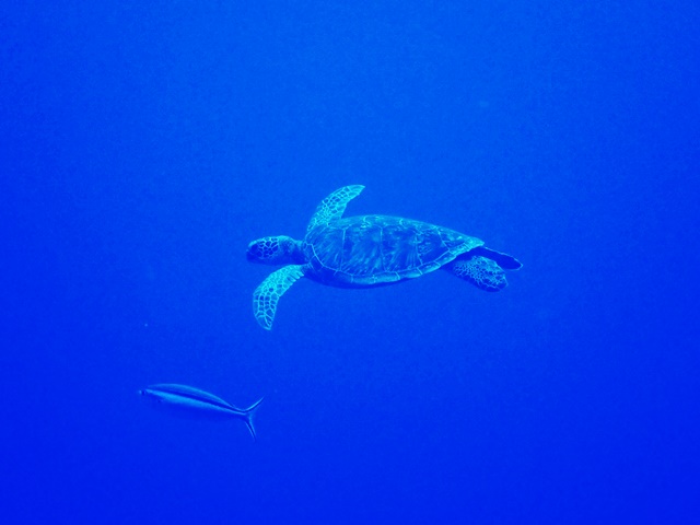 カメは結構ゆっくり近くを泳いでくれました