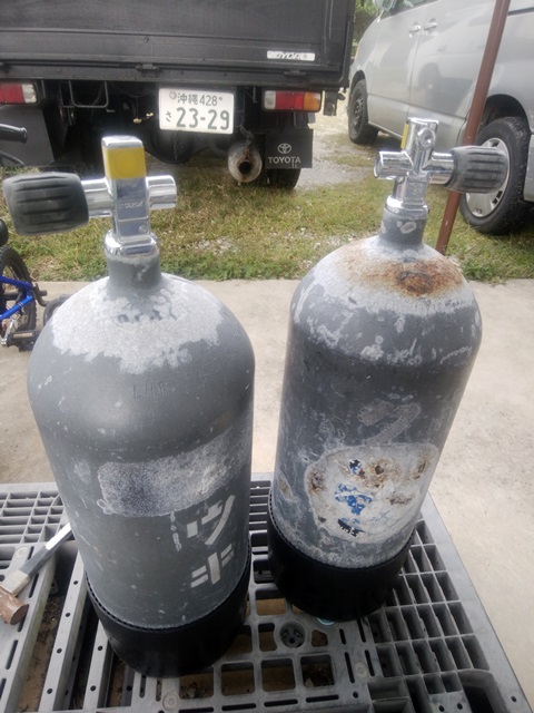 曇り空の本日ですが何とか雨は免れそう 気になってたタンクの塗装でもしましょう 昨日塗料買って来たんだよね 何を塗るか迷ったのですが亜鉛メッキの塗料にしました サビ落とす前はこんな感じ サンダーでサビを落としてから塗って乾燥~ サビ落とした写真撮り忘れたなぁ とりあえず3本で塗料使いきりました いつまで持つかなぁ