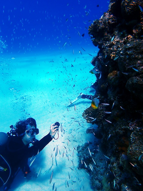 当店ご利用2度目のKちゃん。トゲチョウチョウウオを追いかけてます(^^)
