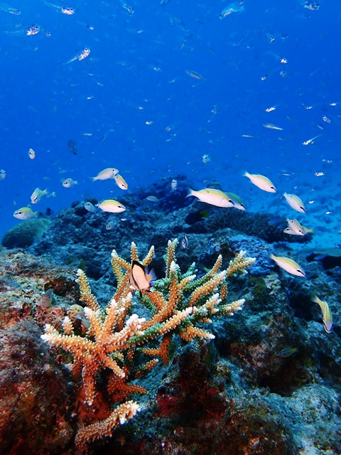 サンゴ育って欲しいね。小さいヨスジフエダイもいっぱいです