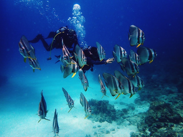 ツバメウオと戯れるダイバー(^^)♬