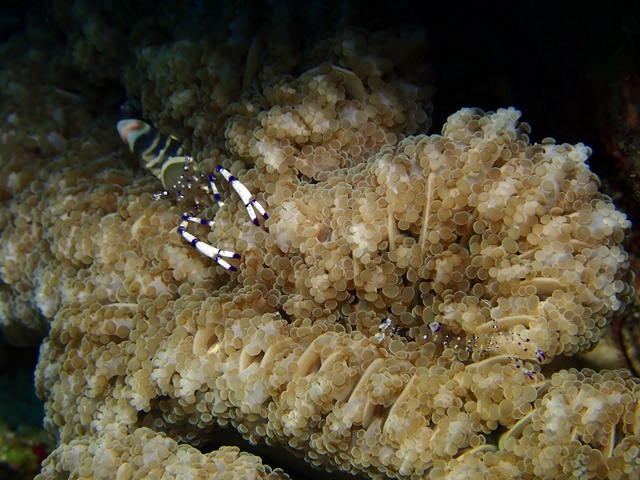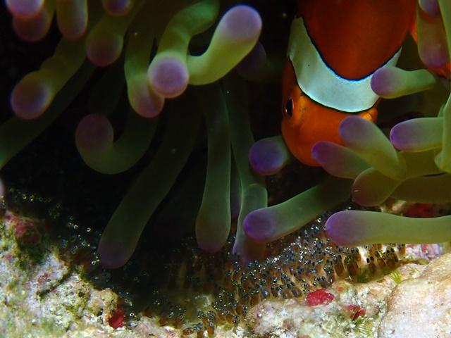 巨大すぎるニセアカホシカクレエビ・・・前にいるのが普通サイズ