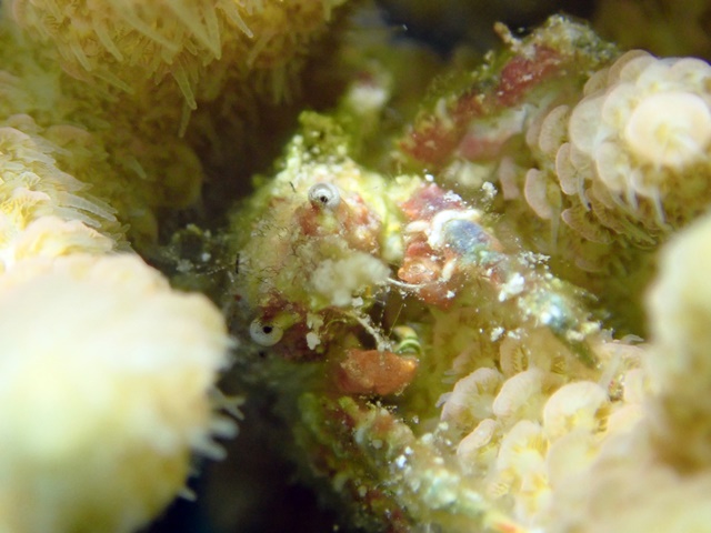 サンゴの間なのにこんなカニが・・・・