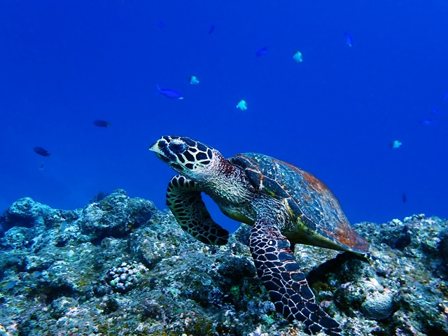 アオウミガメも居たけど今日は珍しくタイマイ!