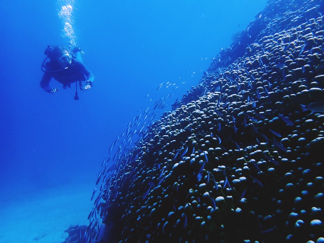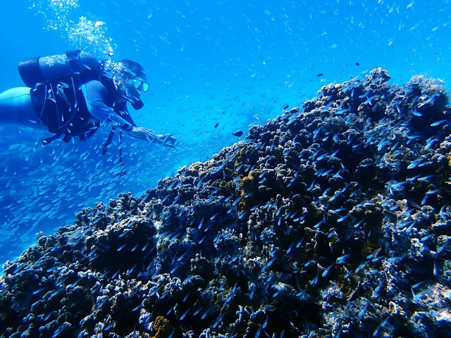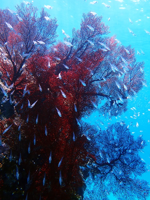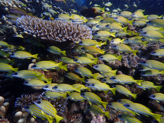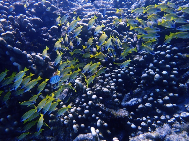 綺麗なサンゴがあるし、ヨスジフエダイの黄色も綺麗ので、、、