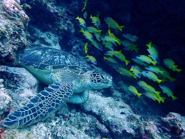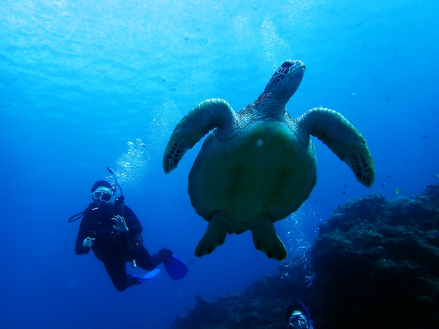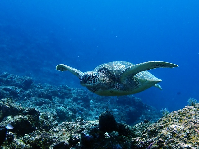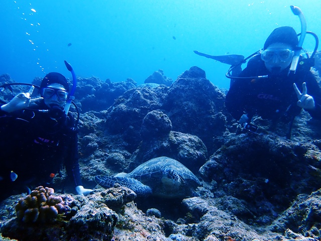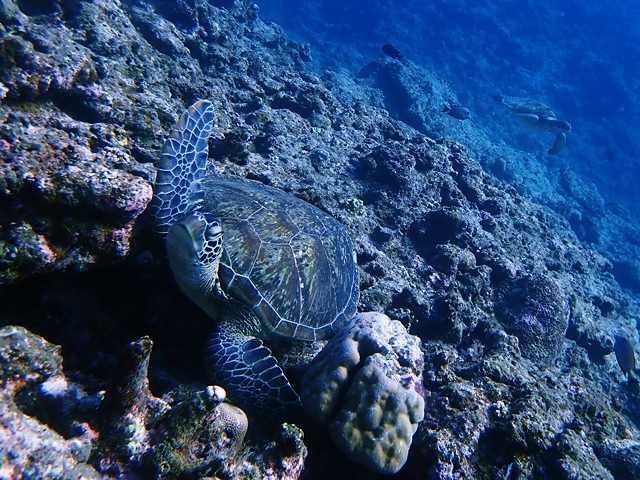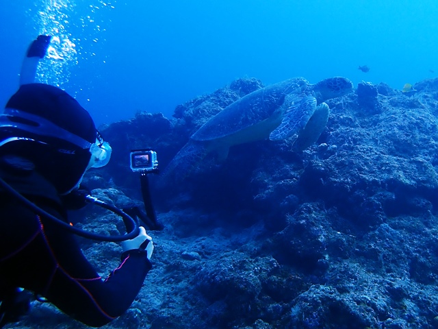 3ダイブ目はカメ三昧で。早速、泳いでるカメみつけたら手前にもカメが居た!