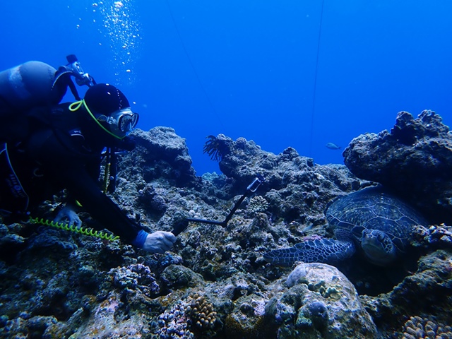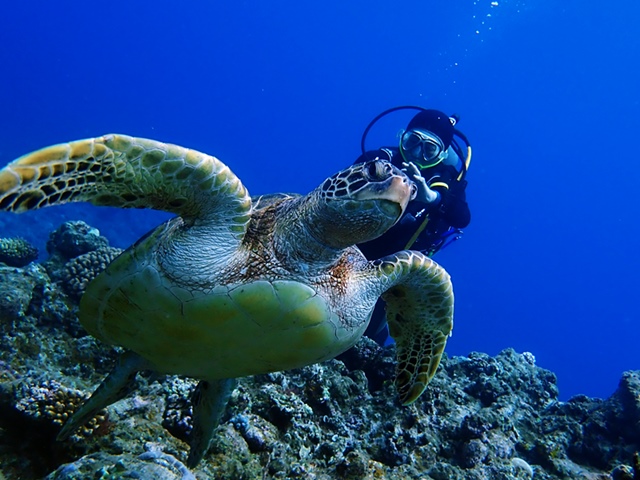 さぁエグジットしよう!って時にゲスト様がカメさん発見!