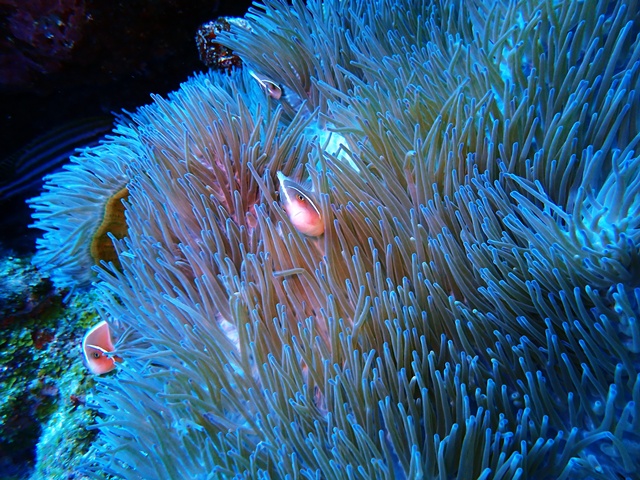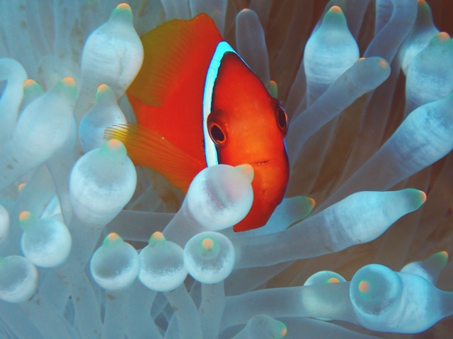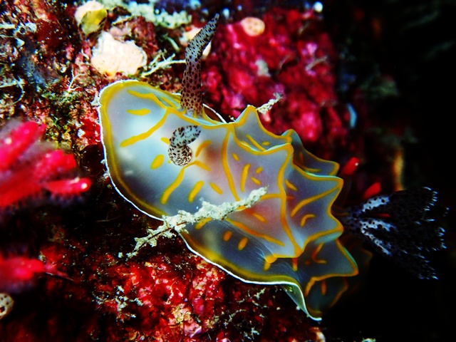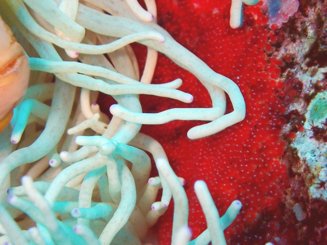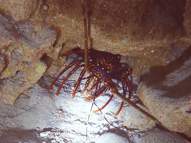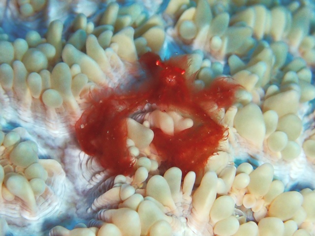少し泳ぐもマンタ見えないのでミナミクモガニなどを激写してると、