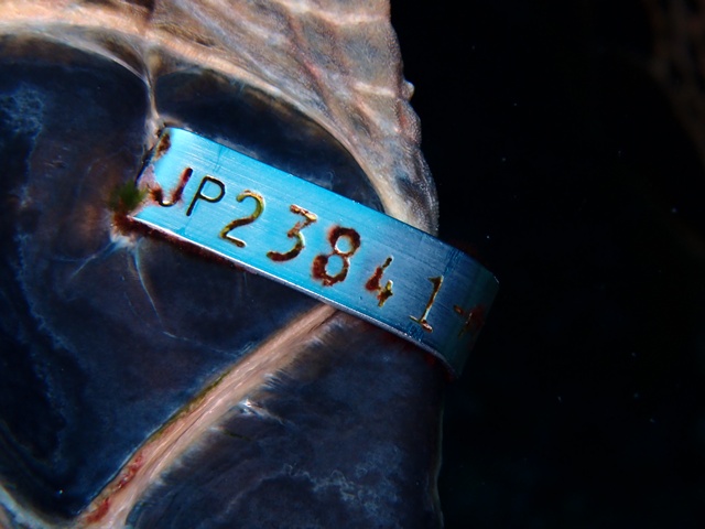 カメの背中で喰ってるイシガキカエルウオ