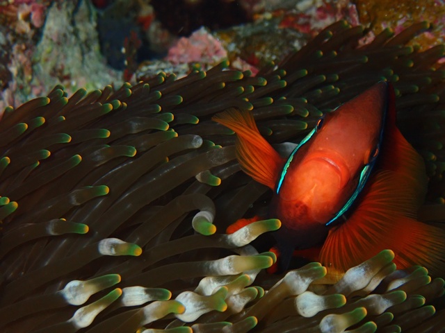 クマノミに乗ってる所を撮りたかったエビ・・・・