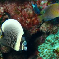 なかなかカメラ持って潜れませんが、スタッフもえがたまにカメラ持って潜って撮った写真を紹介♪ 全世界で?!話題のドリーことナンヨウハギ。小さいです10円玉くらいかなぁ それを囲むフタスジリュウキュウスズメダイ、ミツボシクロ …
