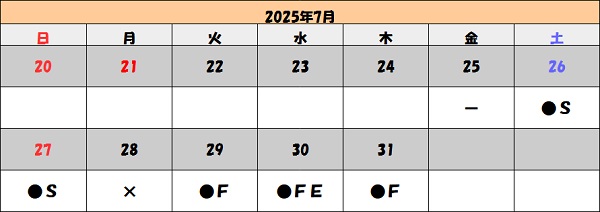 予約状況 2025年7月24日 更新