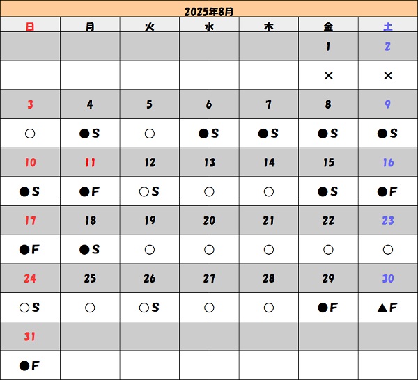 「×」の日もお客様レベルや予約内容によってはお請け出来る事もあります。