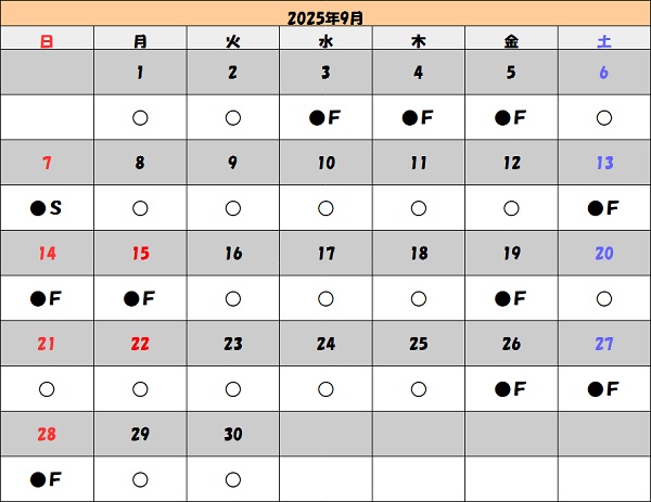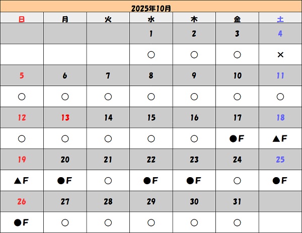 「●」や「▲」の日でも予約内容によってはお請けできない事もございます